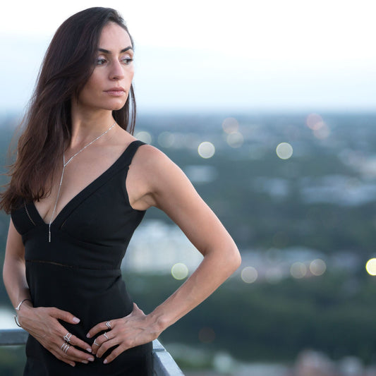Rhodium Plated Signity CZ "V" Drop Necklace
