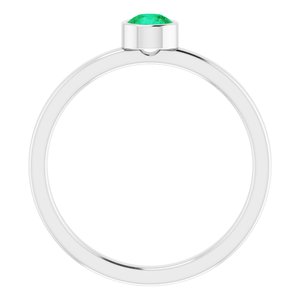 Rhodium-Plated Sterling Silver 4 mm Round Imitation Emerald Ring