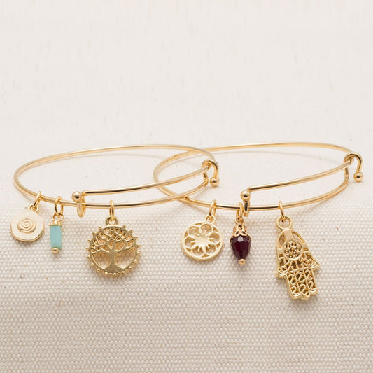 Expandable Gold Tone Tree Charm Fashion Bangle Bracelet