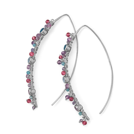 Plum Perfect! Rhodium Plated Multi Stone Beaded Wire Earring
