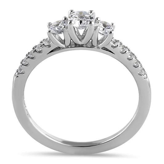Sterling Silver Dainty Round Trio Cut Clear CZ Engagement Ring