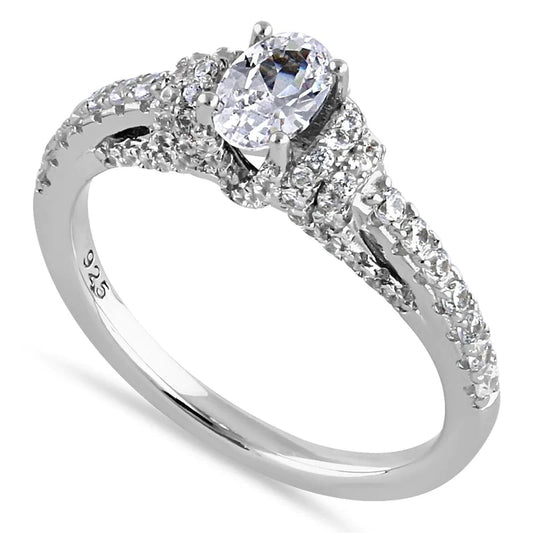 Sterling Silver Victorian Oval and Round Cut Clear CZ Engagement Ring