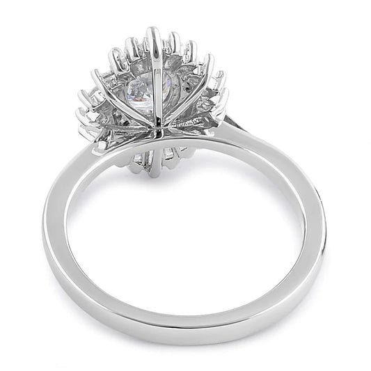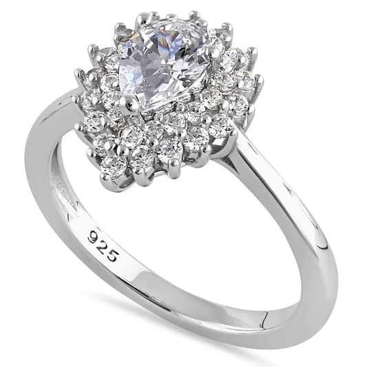 Sterling Silver Elegant Pear Halo Round Cut Clear CZ Engagement Ring