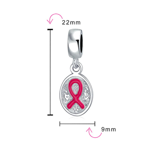 Pink Breast Cancer Survivor Oval Dangle Bead Charm