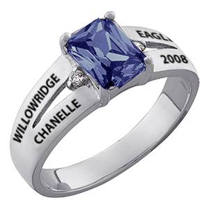 Sterling Silver Emerald Cut Stone & Diamond Accents Class Ring