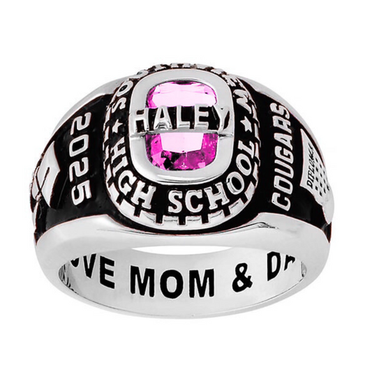 Sterling Silver Ladies Bridge Birthstone Class Ring