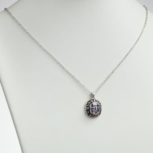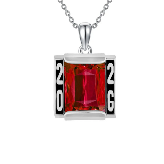 Sterling Silver Top Bridge Cushion-Cut Mascot Birthstone Class Necklace
