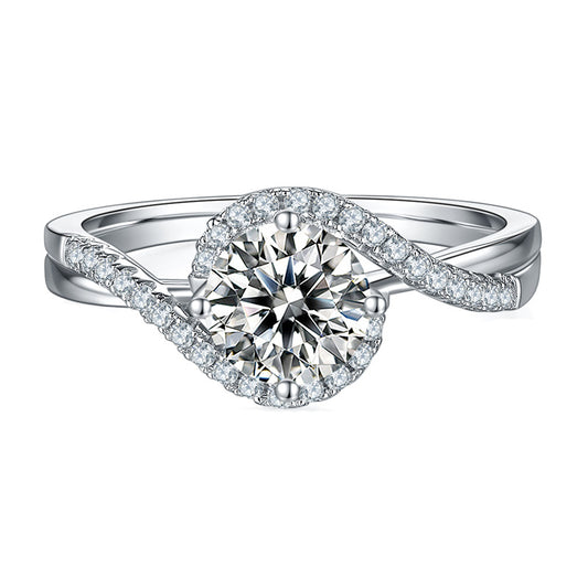 Sterling Silver 1 Carat Unique Round Cut Moissanite Ring