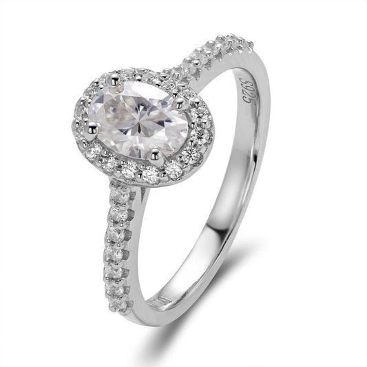 Sterling Silver 1 Carat Ring Oval Cut and Side Stones Moissanite Ring