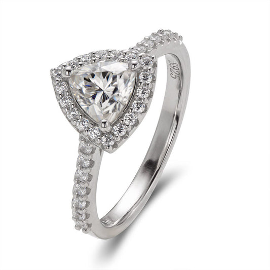 Sterling Silver 1 Carat Trillion Cut and Side Stones Moissanite Ring