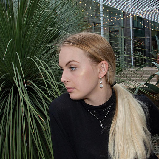 Oxidized Celtic Knot Pear Outline French Wire Earrings