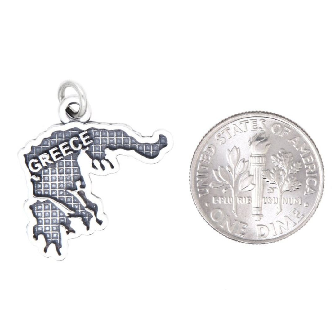 This sterling silver Greece charm is a lasting memento of the ancient cradle of European civilization. Sandstone monuments, nestled among the azure Aegean waves, evoke the grandeur of ancient ages, while quaint fishing villages, fresh seafood, and authentic ouzo beckon travelers today.