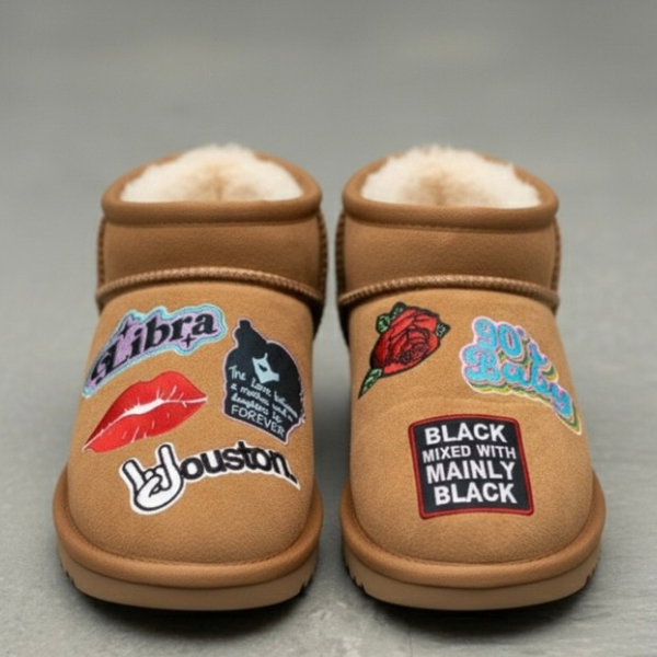 Inspired by the ultimate form of self-expression, these cozy boots are your new canvas. Each pair is uniquely adorned with hand-placed, vibrant patches that reflect your personality, passions, and pride. Whether you're a proud Libra, a '90s Baby, or want to rep your city like Houston, we'll create a statement pair that is 100% you.