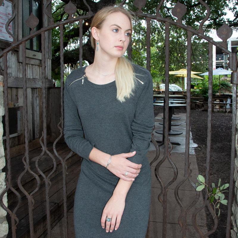Oxidized Reconstituted Turquoise and Leaf French Wire Earrings