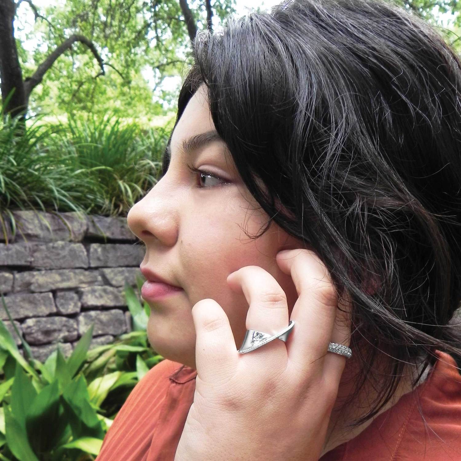 Rhodium Plated Diagonal CZ Ribbon Ring