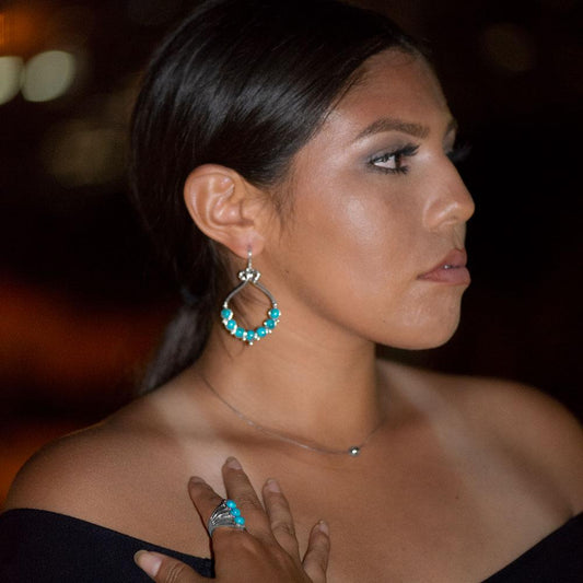 Rainbow Moonstone and Synthetic Turquoise Wrap Ring