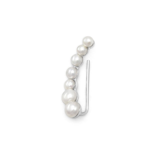 Rhodium Plated Graduated Cultured Freshwater Pearl Ear Climbers