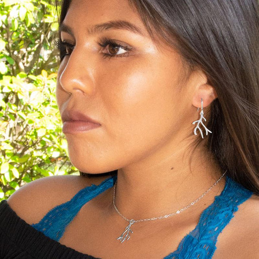 Rhodium Plated Polished Antler Design French Wire Earrings