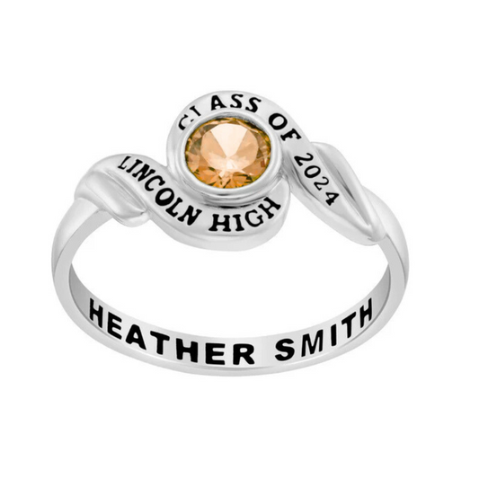 Ladies Sterling Silver Swirl Bypass Round Class Ring