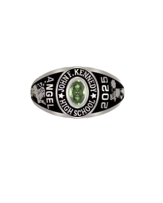 Sterling Silver Ladies Traditional Encased Oval Class Ring