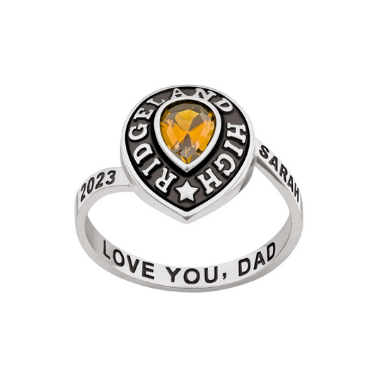 Ladies Sterling Silver Pear Birthstone Class Ring