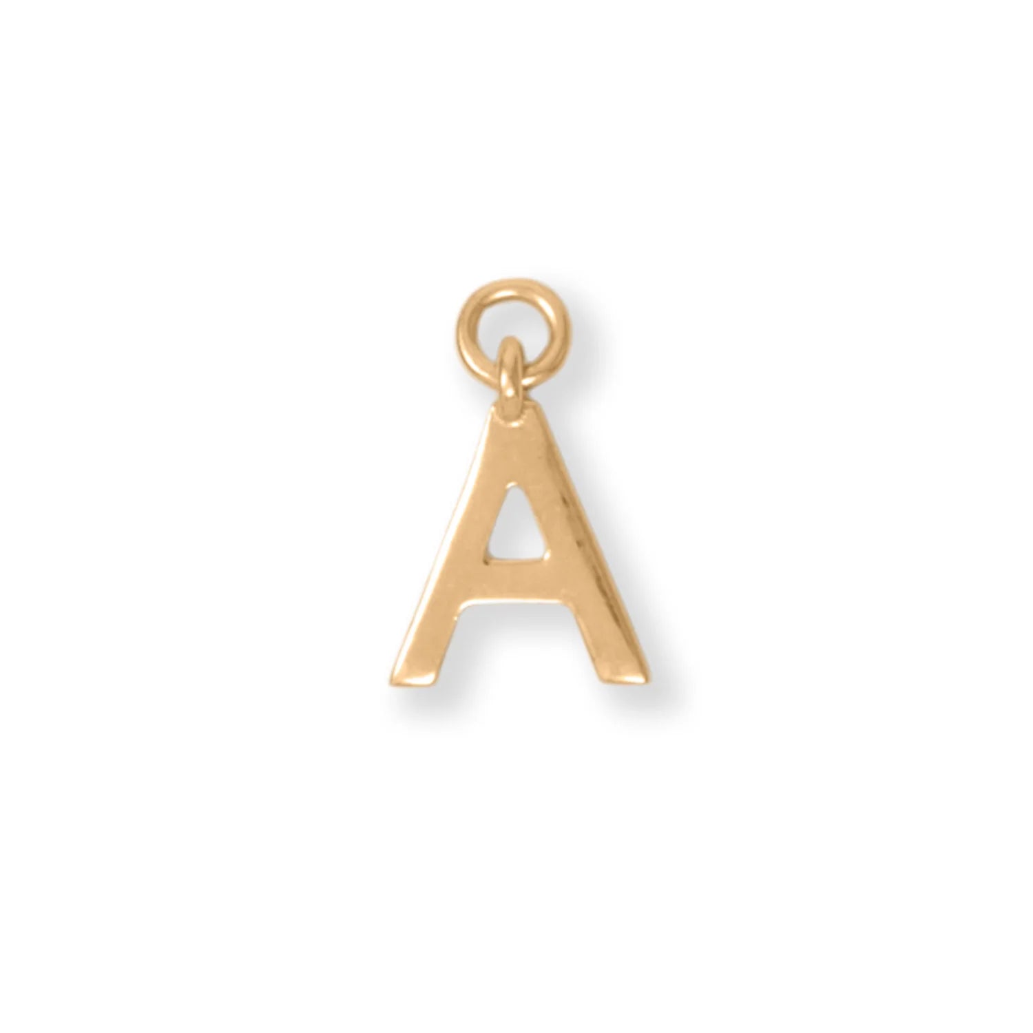 Add a touch of personalization to any piece! 14 karat gold plated sterling silver polished "A" charm is 6.5mm x 9.5mm.
