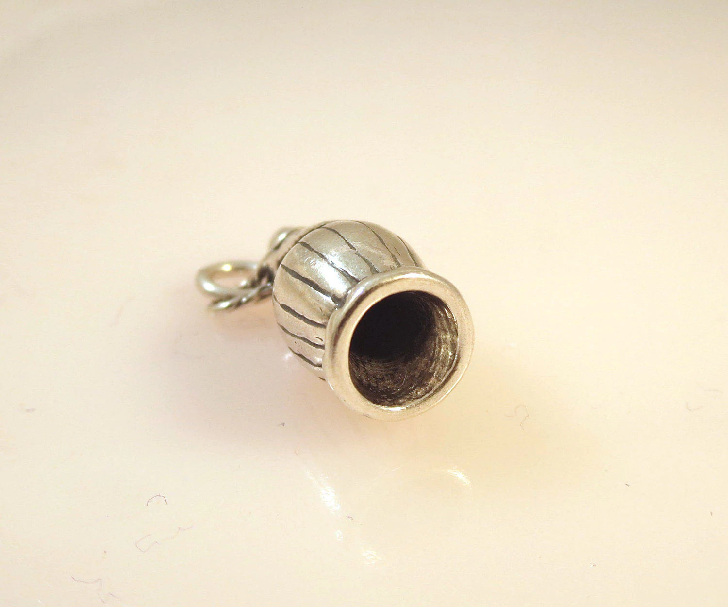 Sterling Silver 3D Chianti Fiasco Wine Bottle Charm. A Great Charm To Remember Your Trip Or Vacation To Chianti Region In Central Tuscany. Charm measures approx 9 mm by 20 mm not including the jump ring. (3/8" by 3/4")