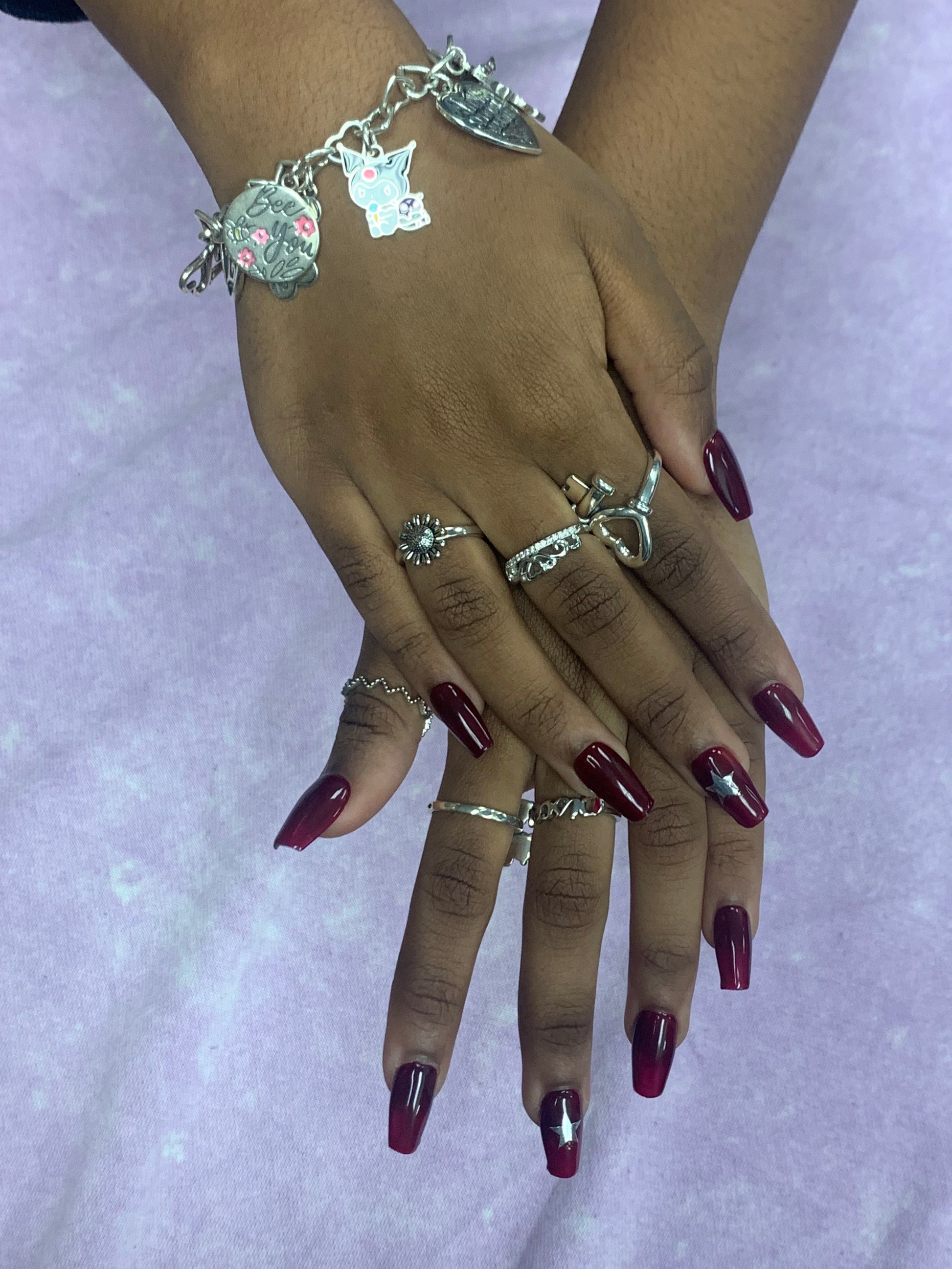 **Please allow up to 3 weeks for your set to be completed.As a bonus each nail set will include 1 Sterling Silver Ring and 1 Sterling Silver Gold Plated Ring in one of the styles shown. Please include ring size in notes section during checkout. Both styles are available in size 4-10.**