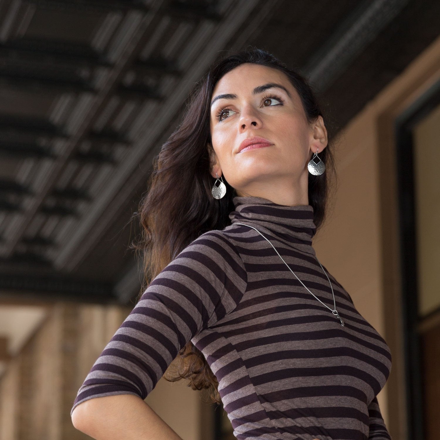 Oxidized, hammered sterling silver cut out pear shape french wire earrings. The earrings measure 26mm x 43mm. .925 Sterling Silver
