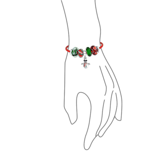 Red Leather Christmas Snowman Winter Charm Bracelet