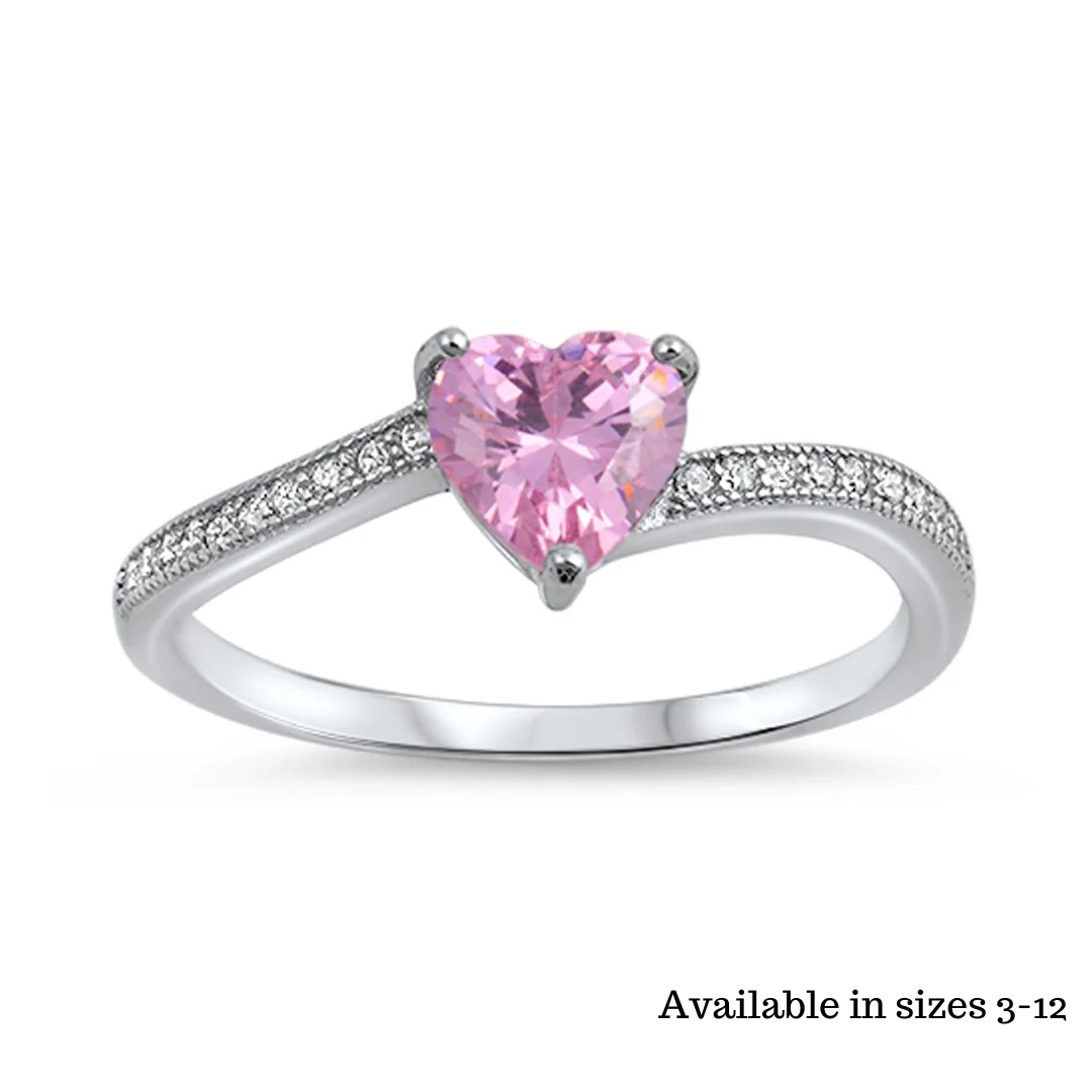 5. CZ Heart Ring in Pink or White with Ring Sizer