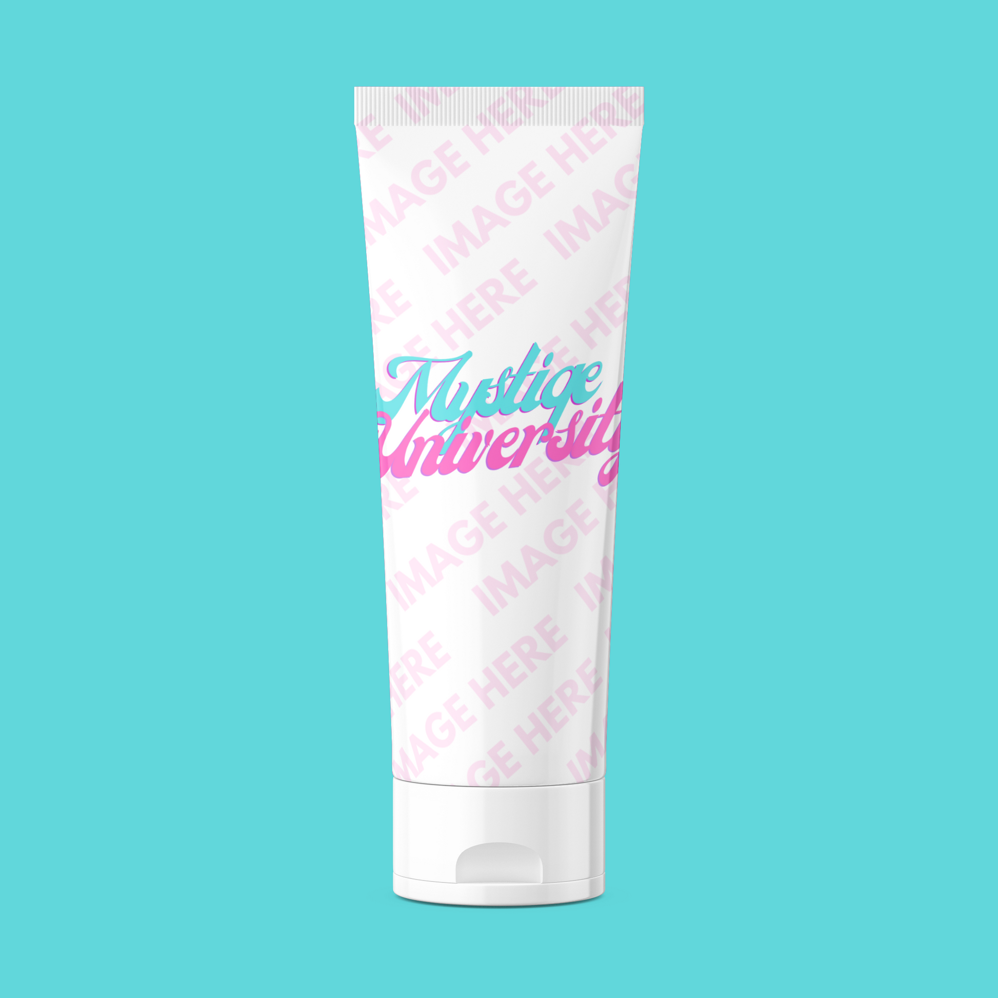 Use this mockup to envision your label design on a plastic cosmetic tube with a white cap.