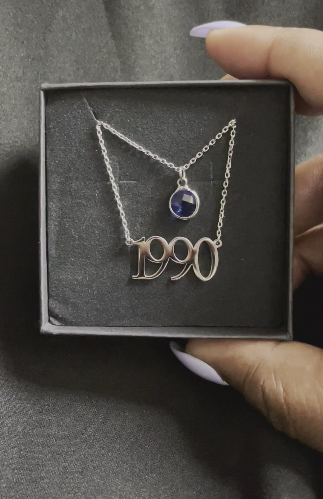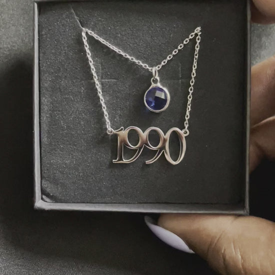 Choose from Sterling Silver, Rose Gold Plating, or Gold Plating to adorn your Birth Year and Birthstone Necklace featuring the special year and birthstone of the wearer!