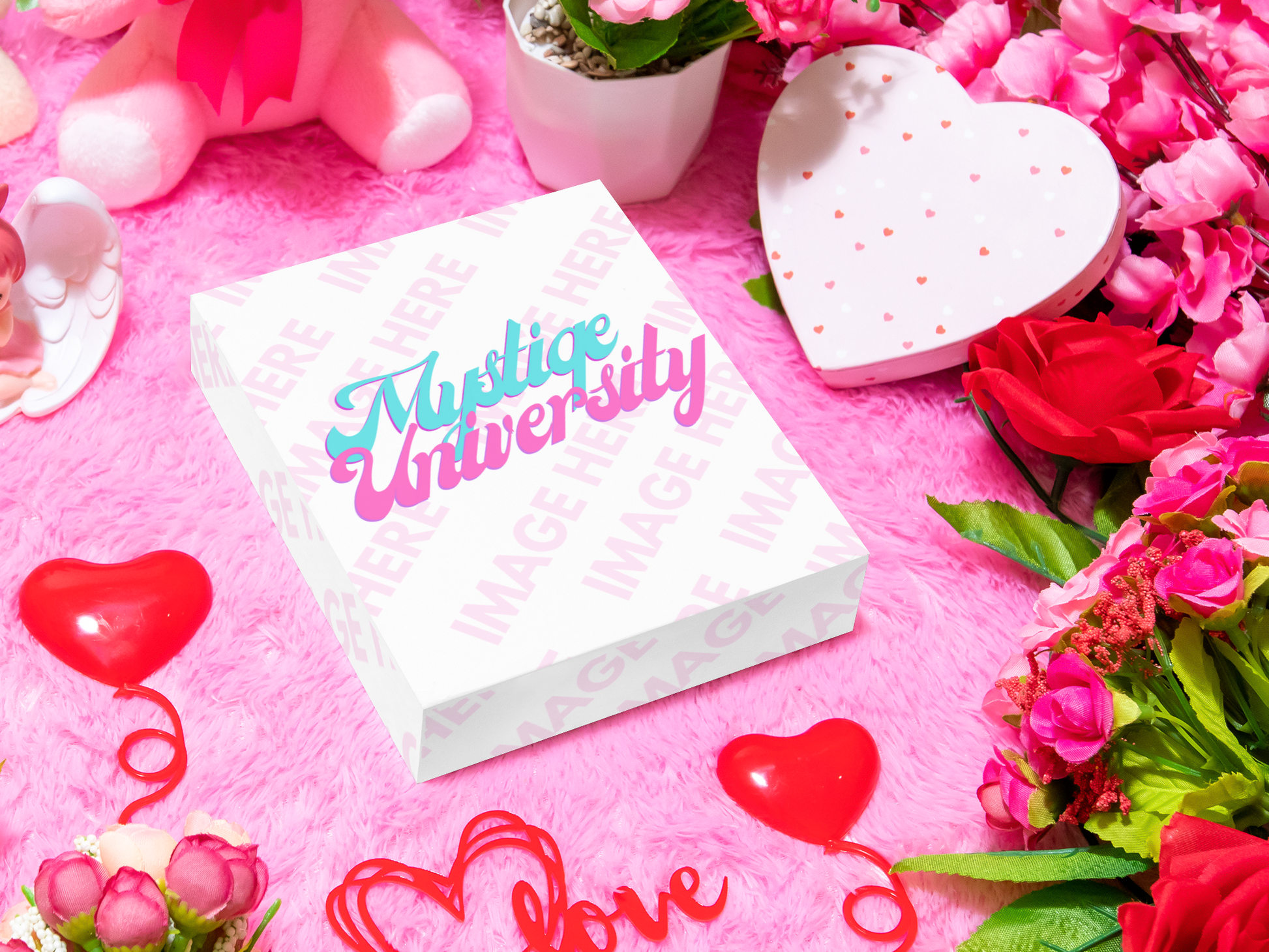 Use this mockup to envision your design on a box surrounded by romantic decorations.