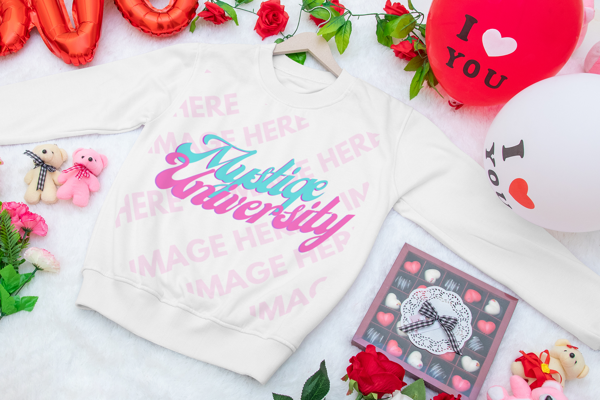 Use this mockup to envision your design on a sweatshirt surrounded by romantic elements.
