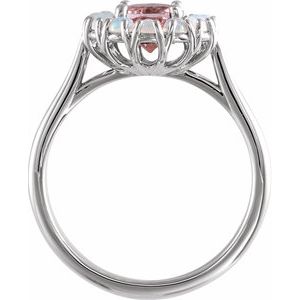 Sterling Silver Morganite & Ethiopian Opal Halo-Style Ring