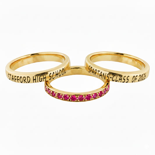 Promo Sterling Silver Faceted Rectangular Birthstone School Class Ring