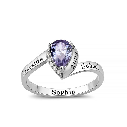 Promo Sterling Silver Pear Birthstone & CZ Class Ring