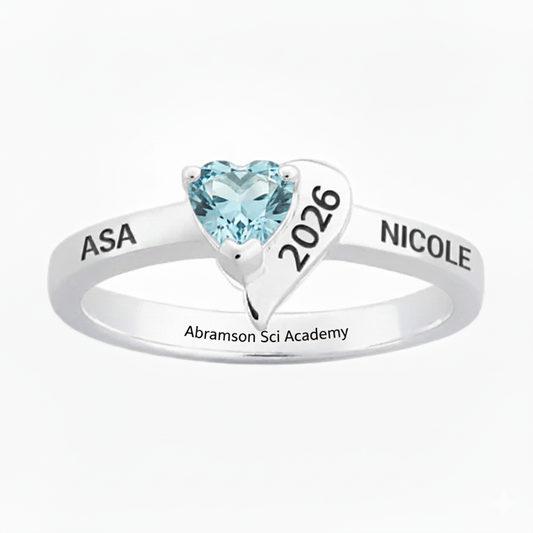Abramson Sci Academy Sterling Silver Crystal Heart Class Ring