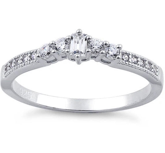Sterling Silver Emerald Cut Clear CZ Ring