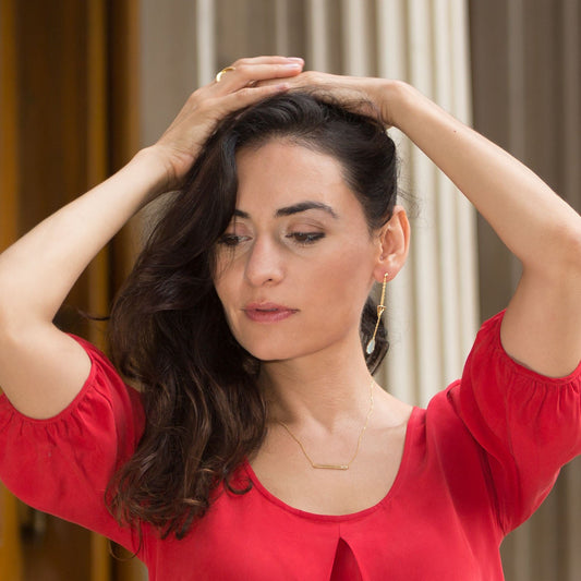 14 Karat Gold Plated Bar Necklace with Y Drop