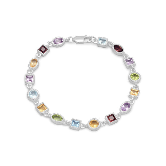 8" Rhodium Plated Pear and Oval CZ Bracelet