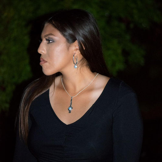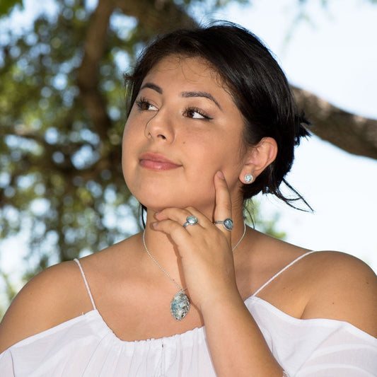 Round Ancient Roman Glass Stud Earrings with Woven Wire Mesh