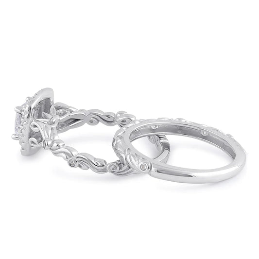 Sterling Silver Clear CZ Vintage Engagement Ring Set