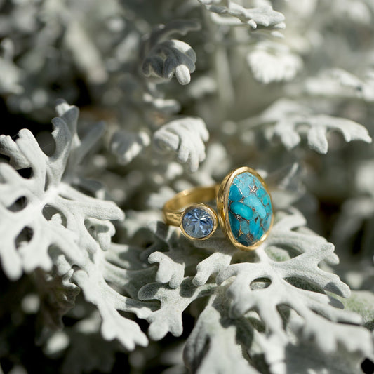 14 Karat Gold Plated Ring with Blue Topaz and Turquoise