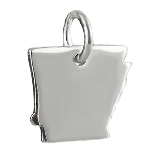 State of Arkansas charm can be worn as a pendant or added to a charm bracelet. The charm is made of 925 sterling silver and comes with soldered jump ring.