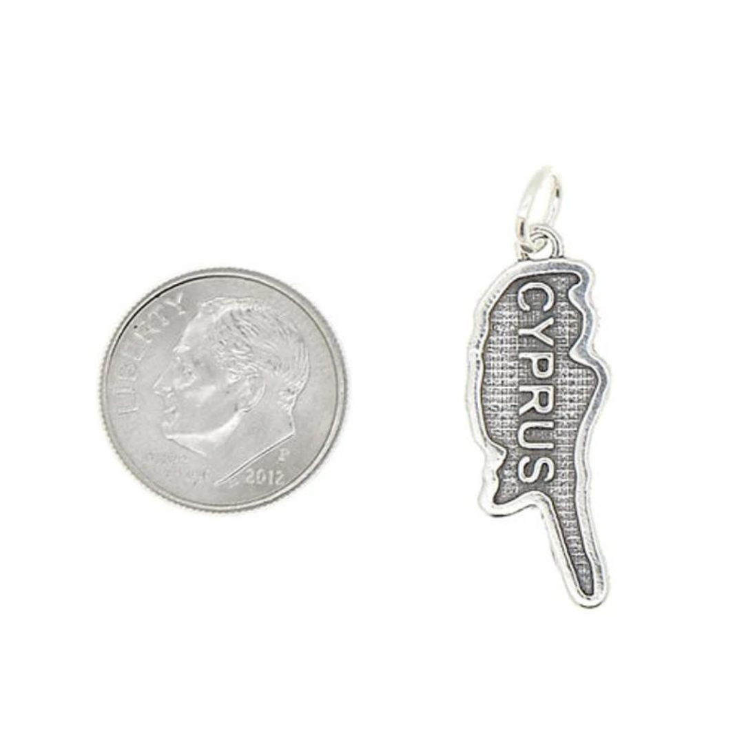 Discover anew the alluring land of Aphrodite with our sterling silver Cyprus charm. Home to the delights of classic Mediterranean civilization - historical sites, monasteries, olive orchards, and beaches - this isle is guaranteed to provide memorable sights and unparalleled leisure.