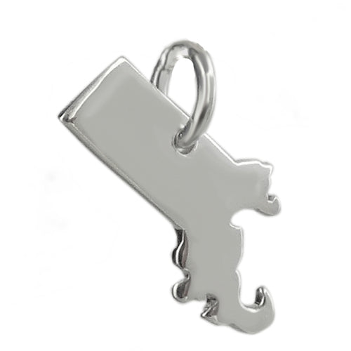 State of Massachusetts charm can be worn as a pendant or added to a charm bracelet. The charm is made of 925 sterling silver and comes with soldered jump ring.