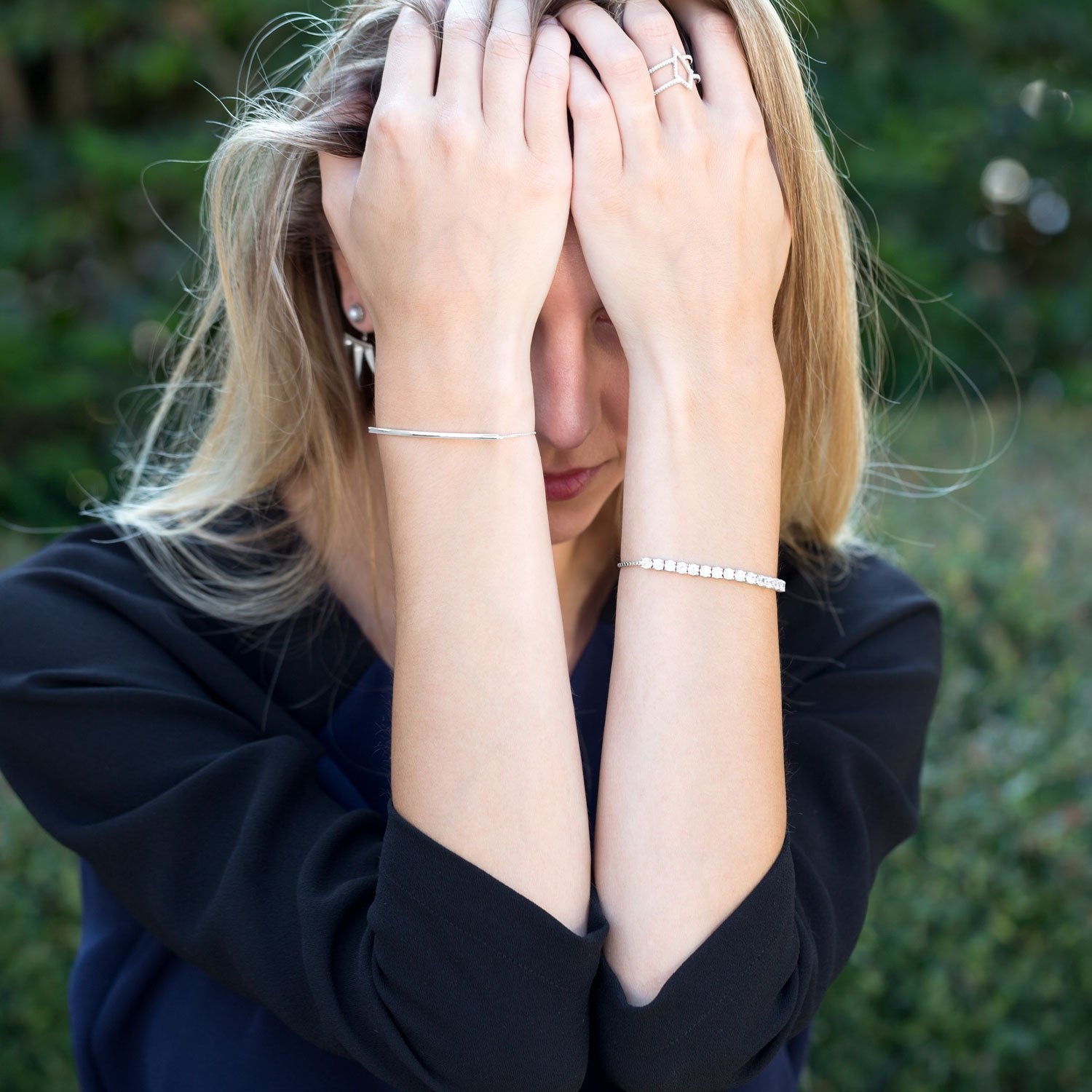 Adjustable sterling silver box chain bracelet with a 2mm x 47mm polished bar. The bracelet adjusts with a 4mm sterling silver bead. Bracelet adjusts to 9.25". .925 Sterling Silver