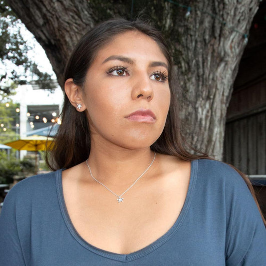 Pendientes pequeños con circonita cúbica y copo de nieve chapados en rodio